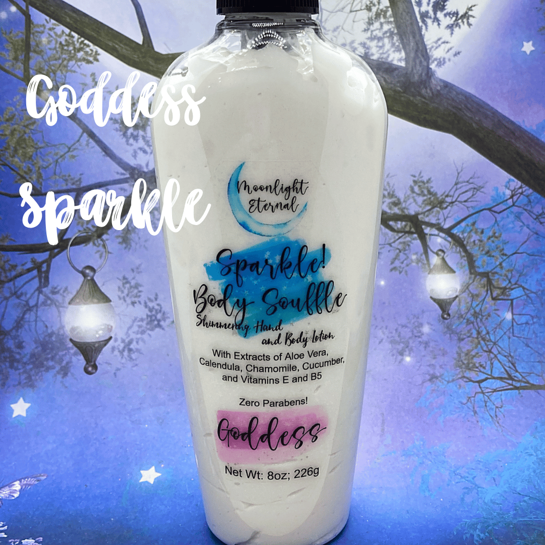 🌙Revitalize Your Skin: Say goodbye to dry, lackluster skin – our divine Body Soufflé is here to rejuvenate and moisturize all skin types. Our lightweight formula sinks in effortlessly, without any greasy after-feel. And with our sparkle formulas, you can glow all day long!